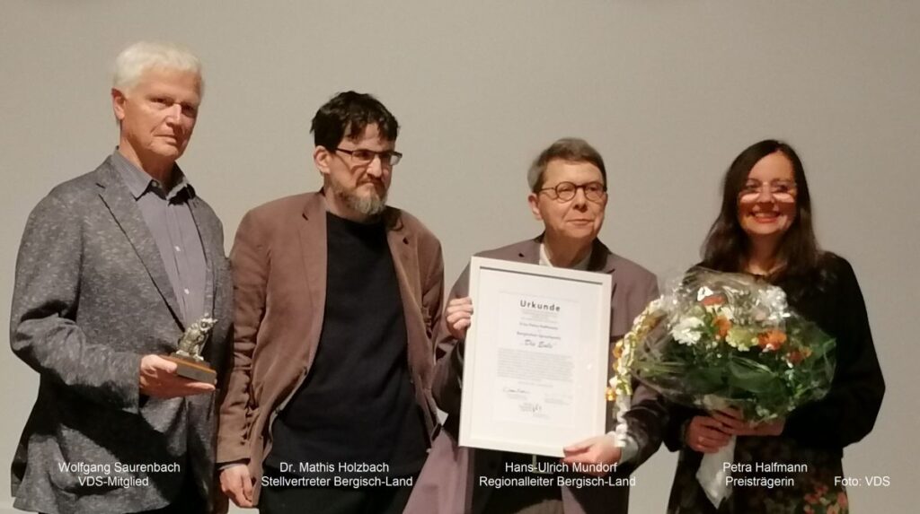 Wir freuen uns, dass unser Bergischer Sprachpreis – „Die Eule“ inzwischen im VDS zu einer festen Größe geworden ist. Im Oktober 2023 konnten wir nach längerer Corona-Pause die Verleihung der „Eule“ wieder aufnehmen und mit unserer fünften „Eule“ auch ein kleines Jubiläum feiern. Wir werden die „Eulen-Tradition“ gerne fortsetzen.